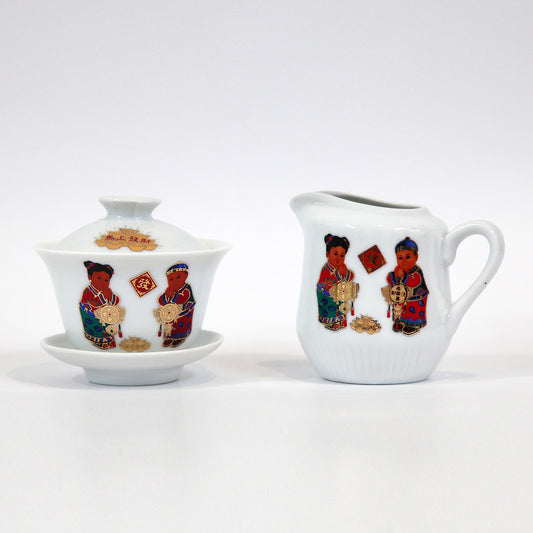 「恭喜発財」子供柄の巧夫茶セット・10点