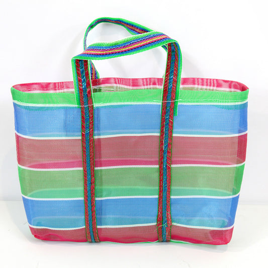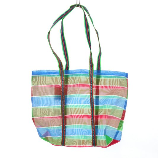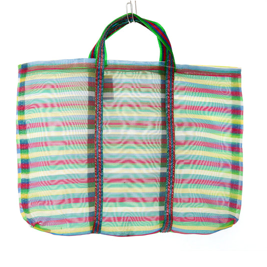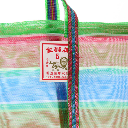 【台湾製】網エコバッグ|金獅牌(赤緑白青黄・ボーダー/マチなし)
