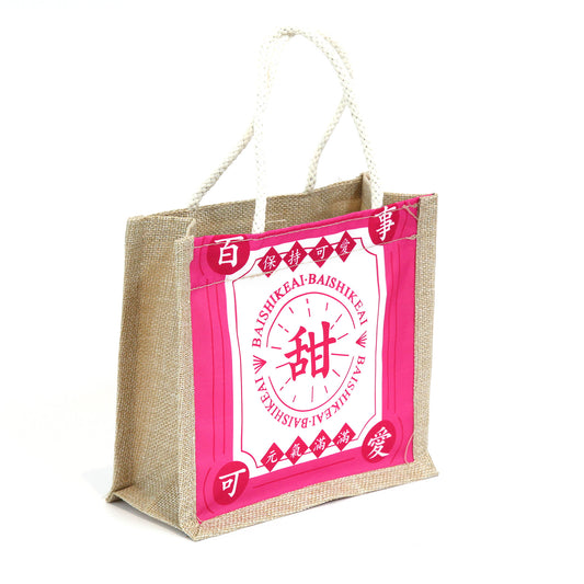 【チャイトロオリジナル】布バッグ|ピンク&シルバー(小)