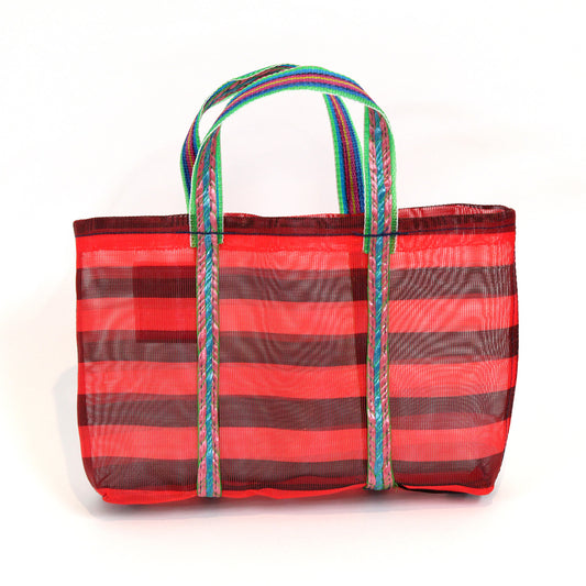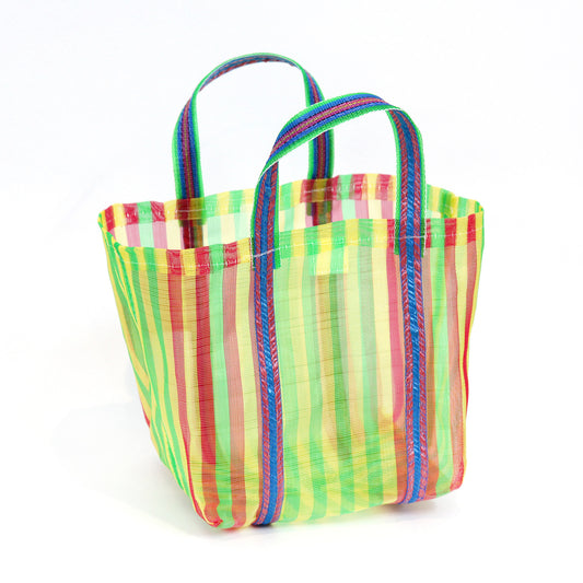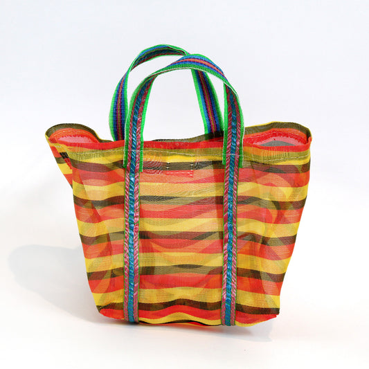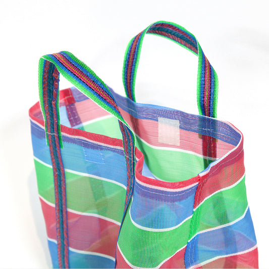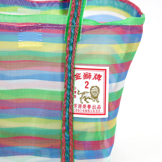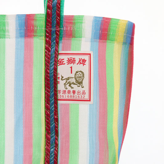 【台湾製】網エコバッグ|金獅牌(赤緑白青黄・ストライプ/細マチ)