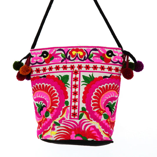 【タイ製】少数民族の刺繍バッグ(ピンク)