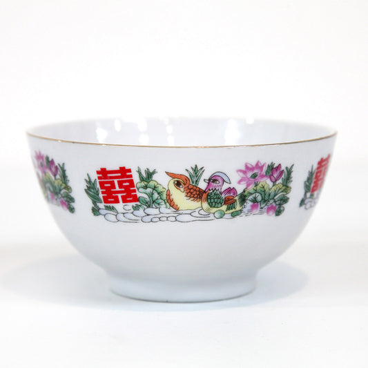 ダブルハピネスとオシドリ柄の茶碗
