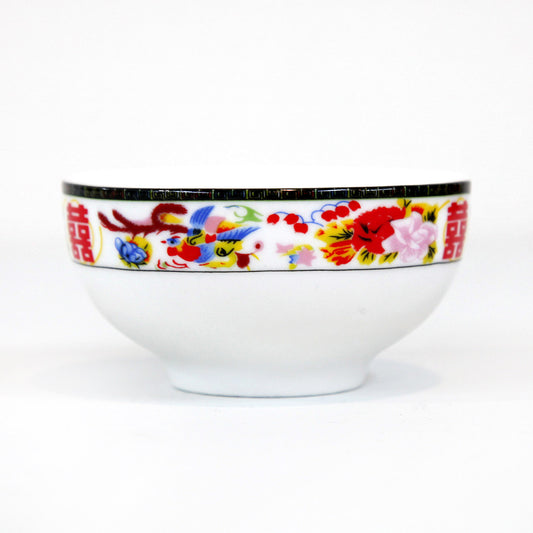 鳳凰とダブルハッピネス柄の茶碗