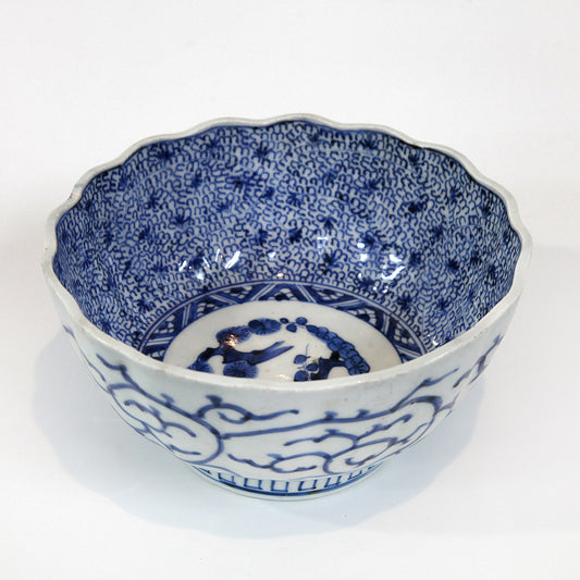 どんぶり・白地に藍色模様【ヴィンテージ】