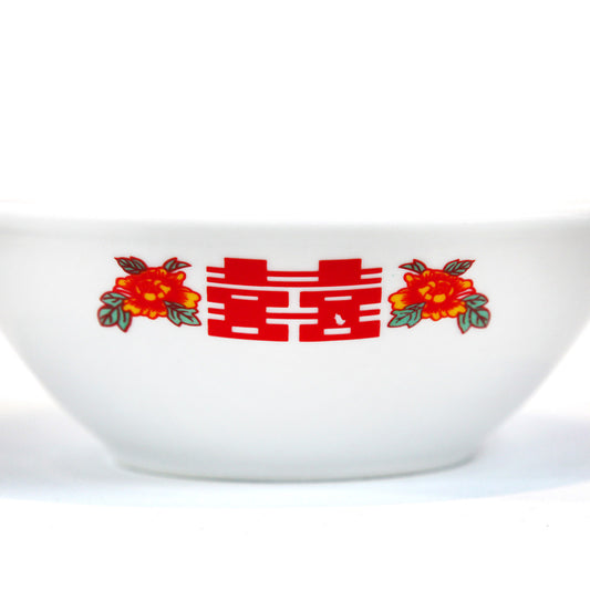 龍鳳とダブルハッピネス柄の茶碗