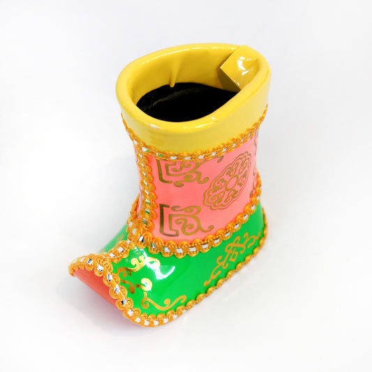 内モンゴル・ブーツ型のペン立て|イエロー×ピンク(色褪せあり)
