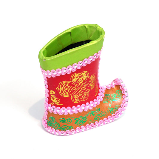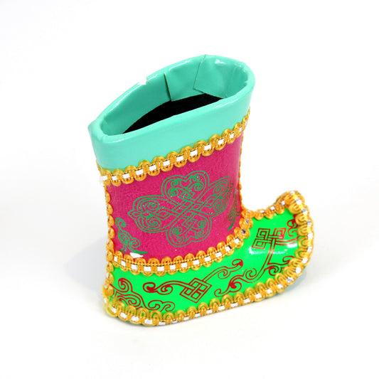 内モンゴル・ブーツ型のペン立て|グリーン×マゼンタ(色褪せあり)