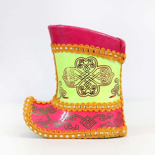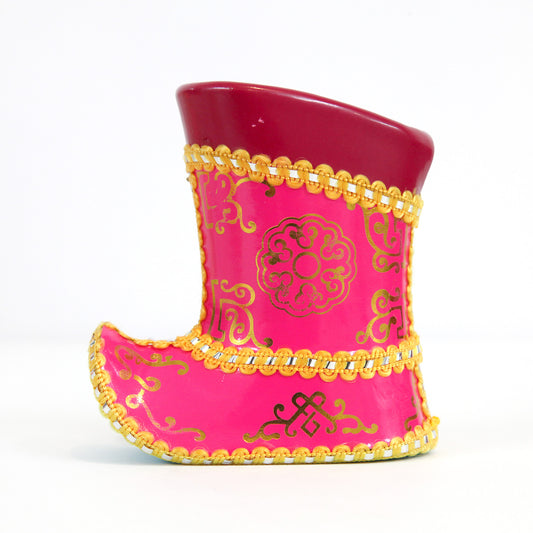 内モンゴル・ブーツ型のペン立て|マゼンタ×イエロー(色褪せあり)