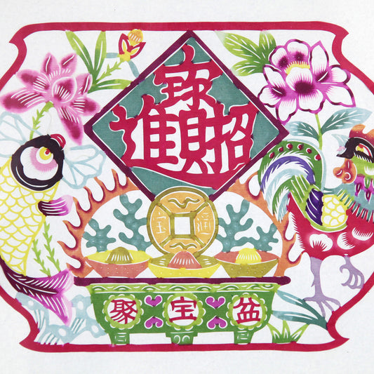 【切り絵】檀香の扇子・ダブルハピネス・魚