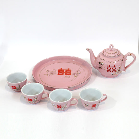 ダブルハピネスお茶セット|皿・茶壺・カップ4個付き