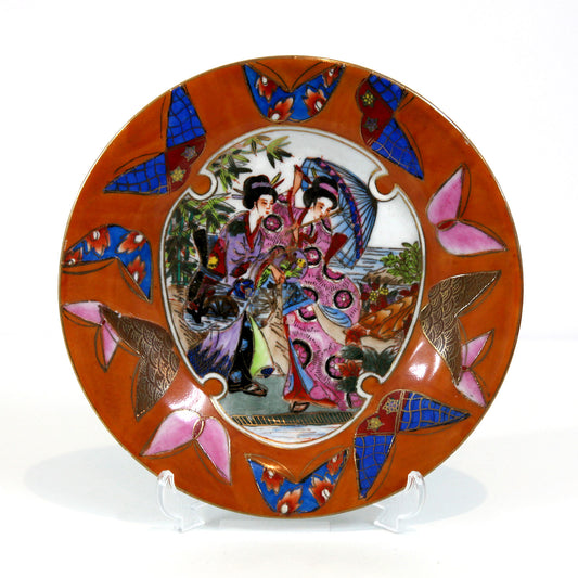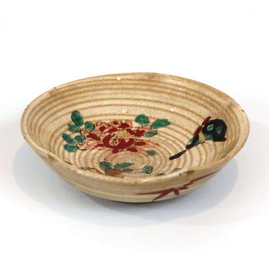 絵皿 手描き 蝶々とピンクの花【デッドストック】