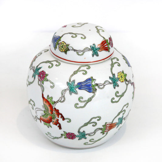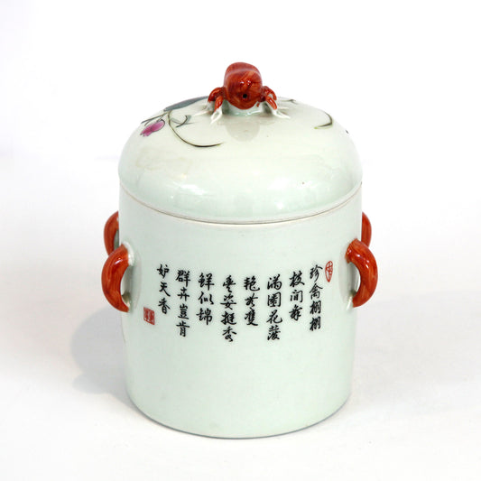 蓮華や鳥、中国の詩・陶器の小物入れ
