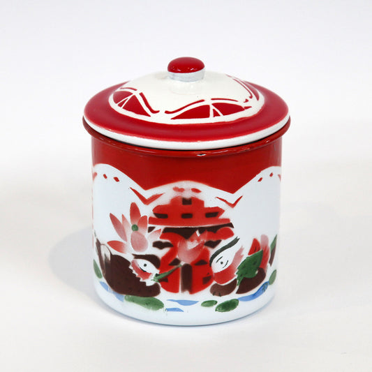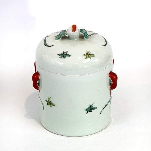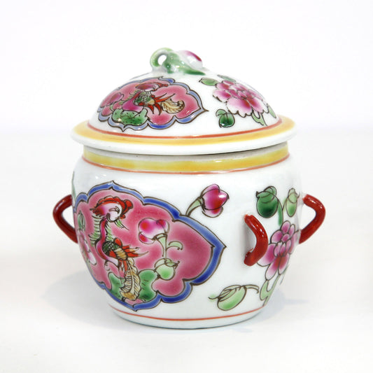 蓮華や鳥、中国の詩・陶器の小物入れ
