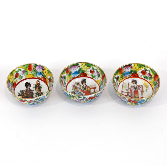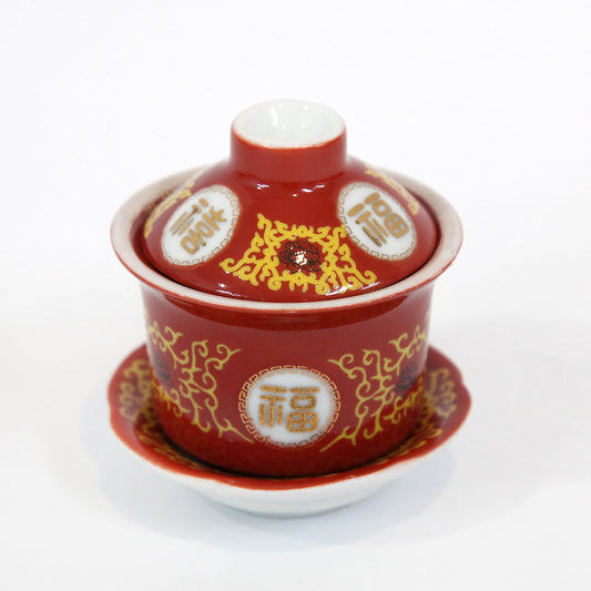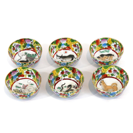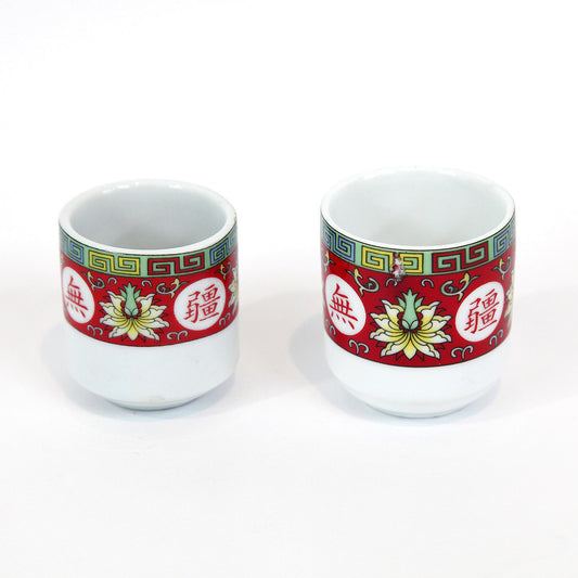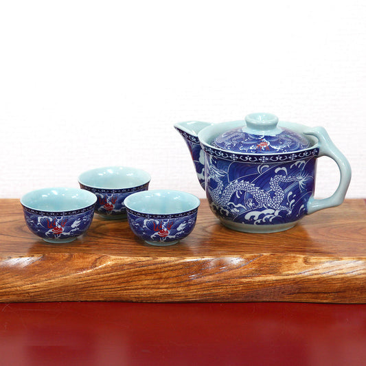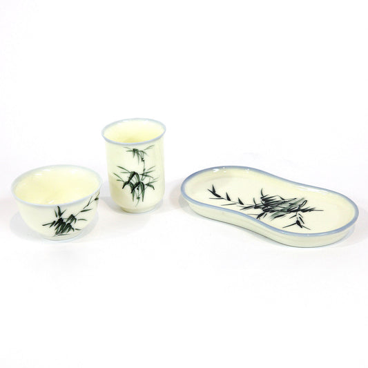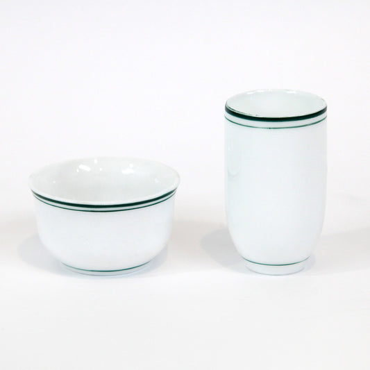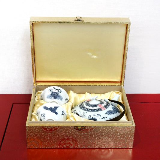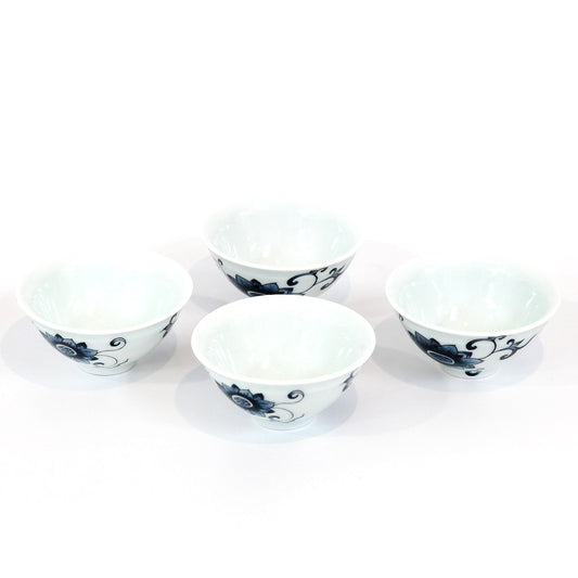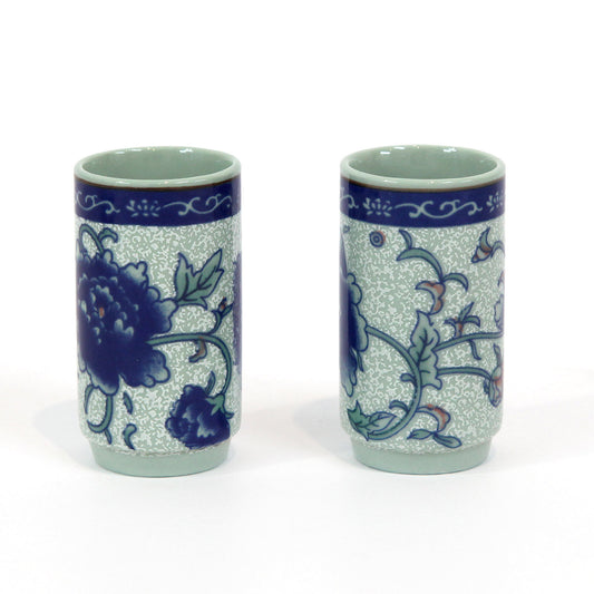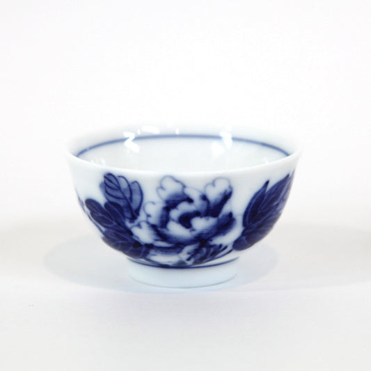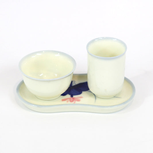 茶杯と香杯の2個セット(白地に青い芍薬)