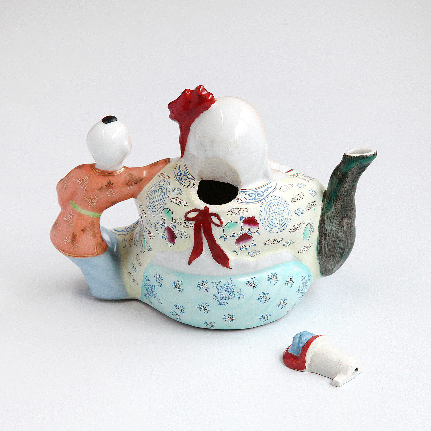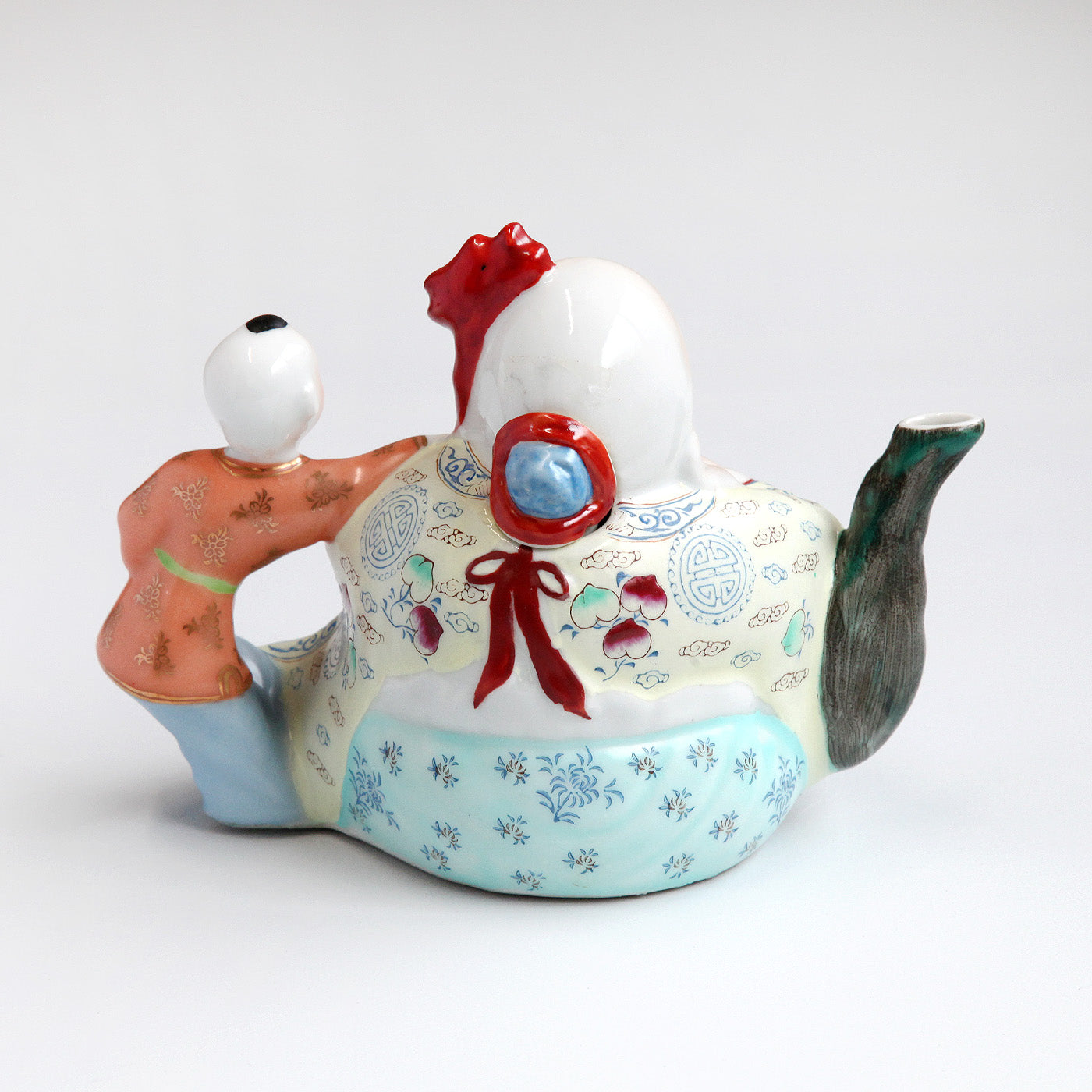 福を招く仙人「寿星」と童子がモチーフになったユニークな陶器製のデザイン。柔らかな色合いと艶やかな絵付けがどこか懐かしい雰囲気を漂わせます。