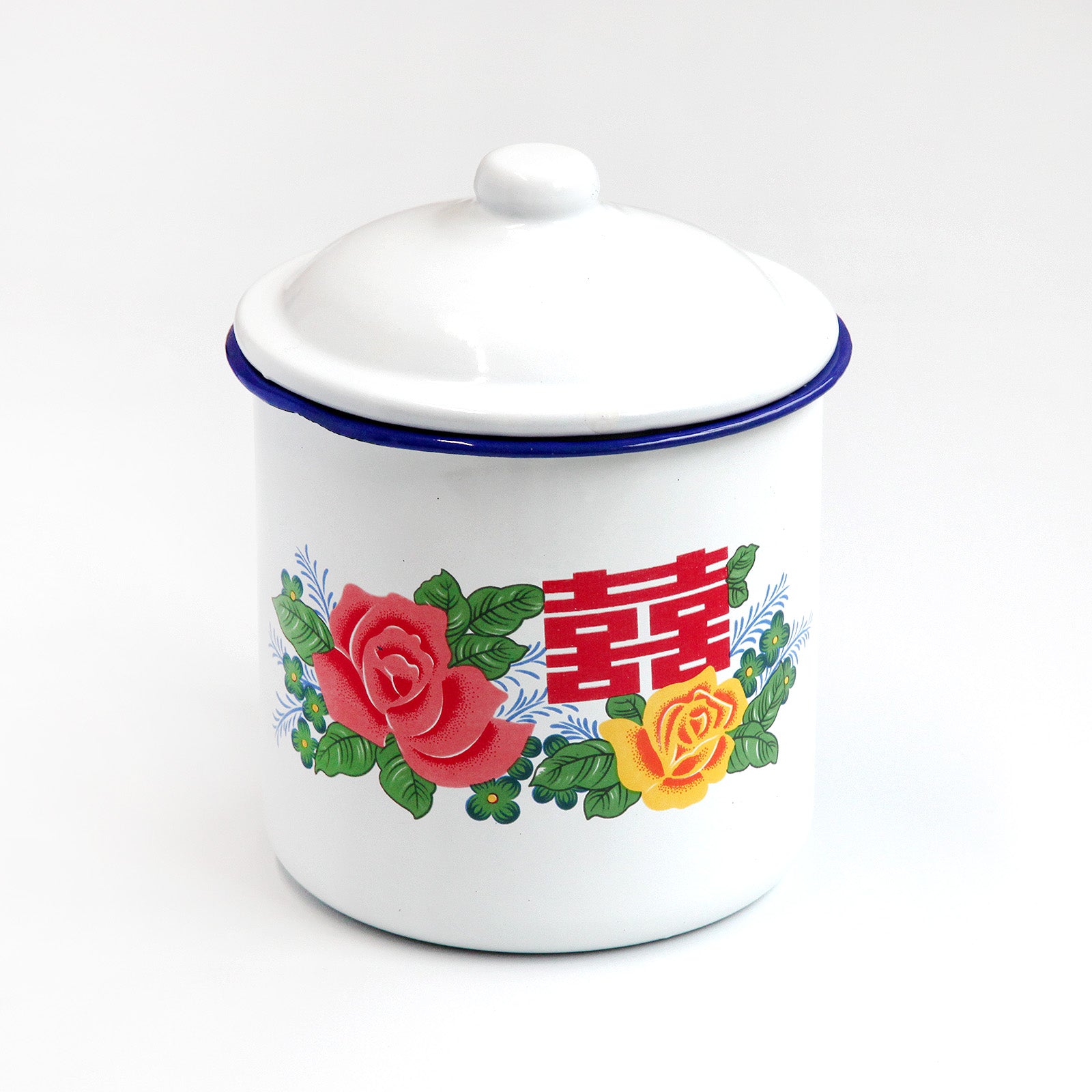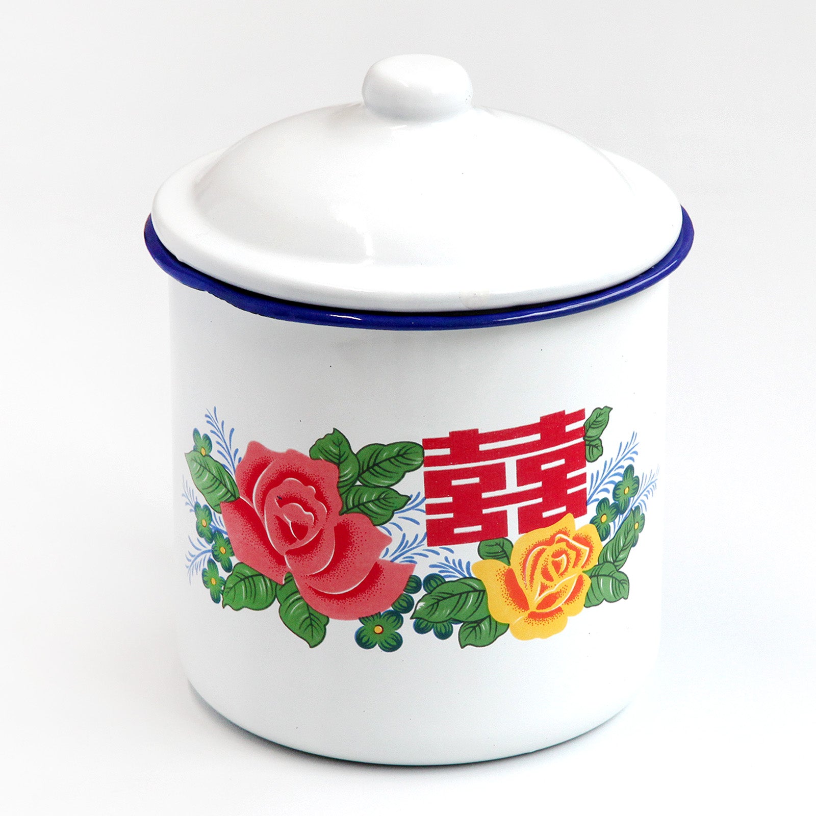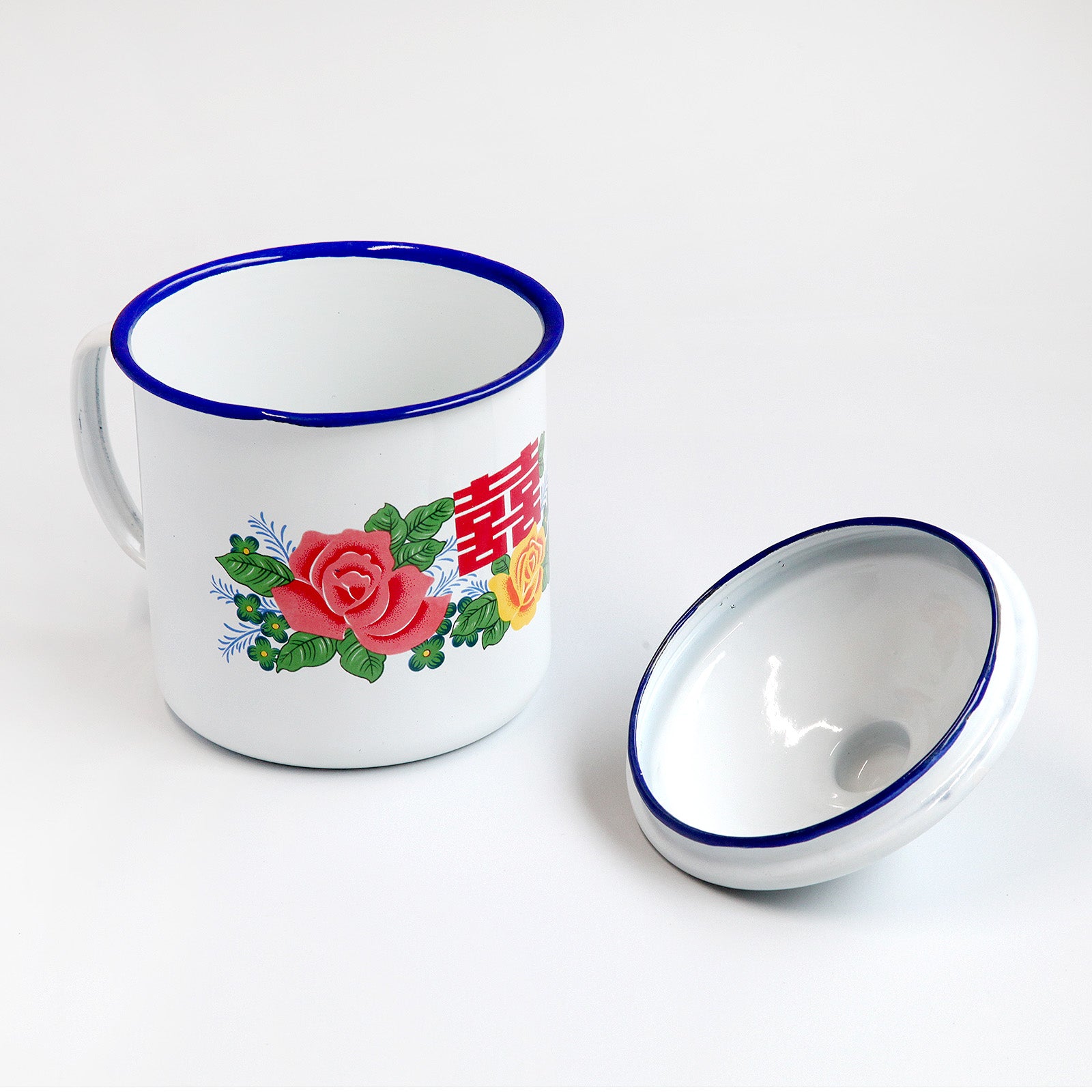 ホーローマグカップ 蓋付(赤と黄色のバラとダブルハピネス)