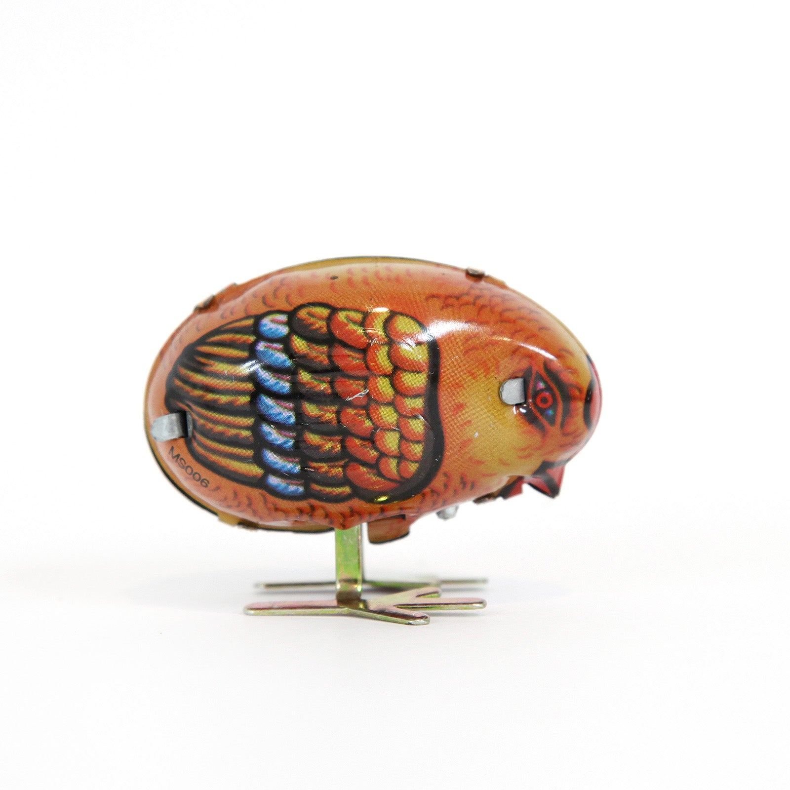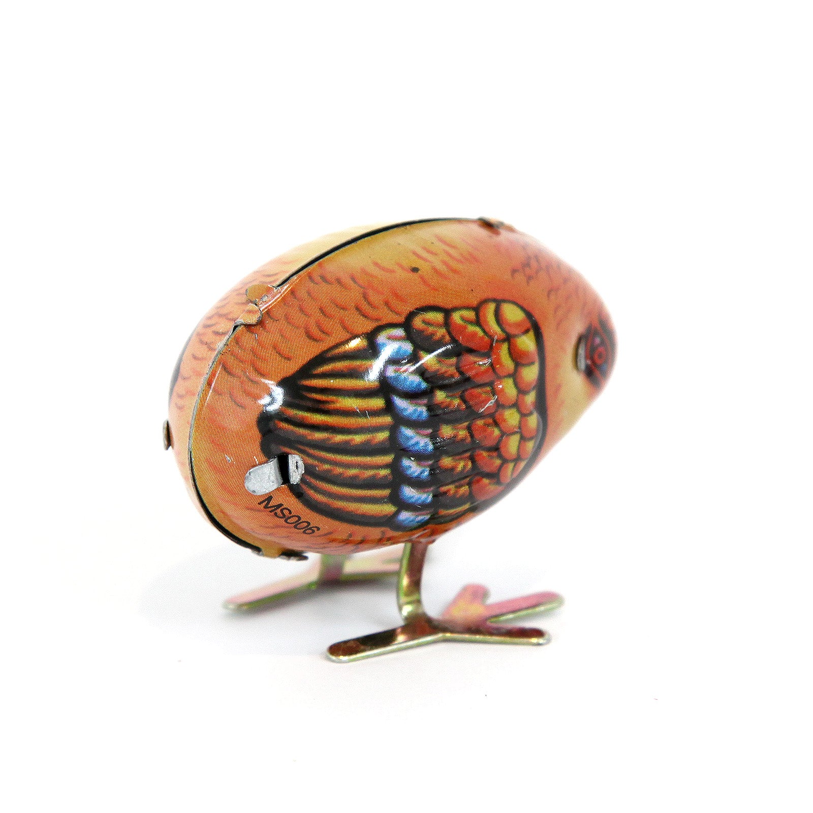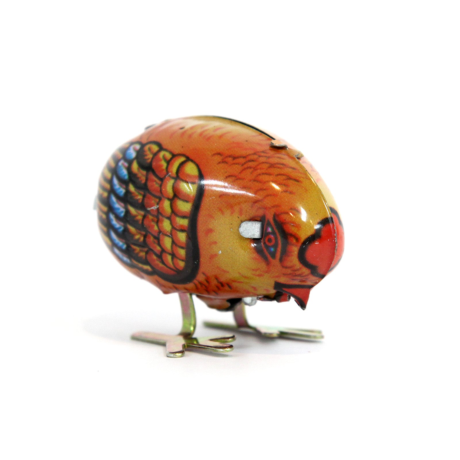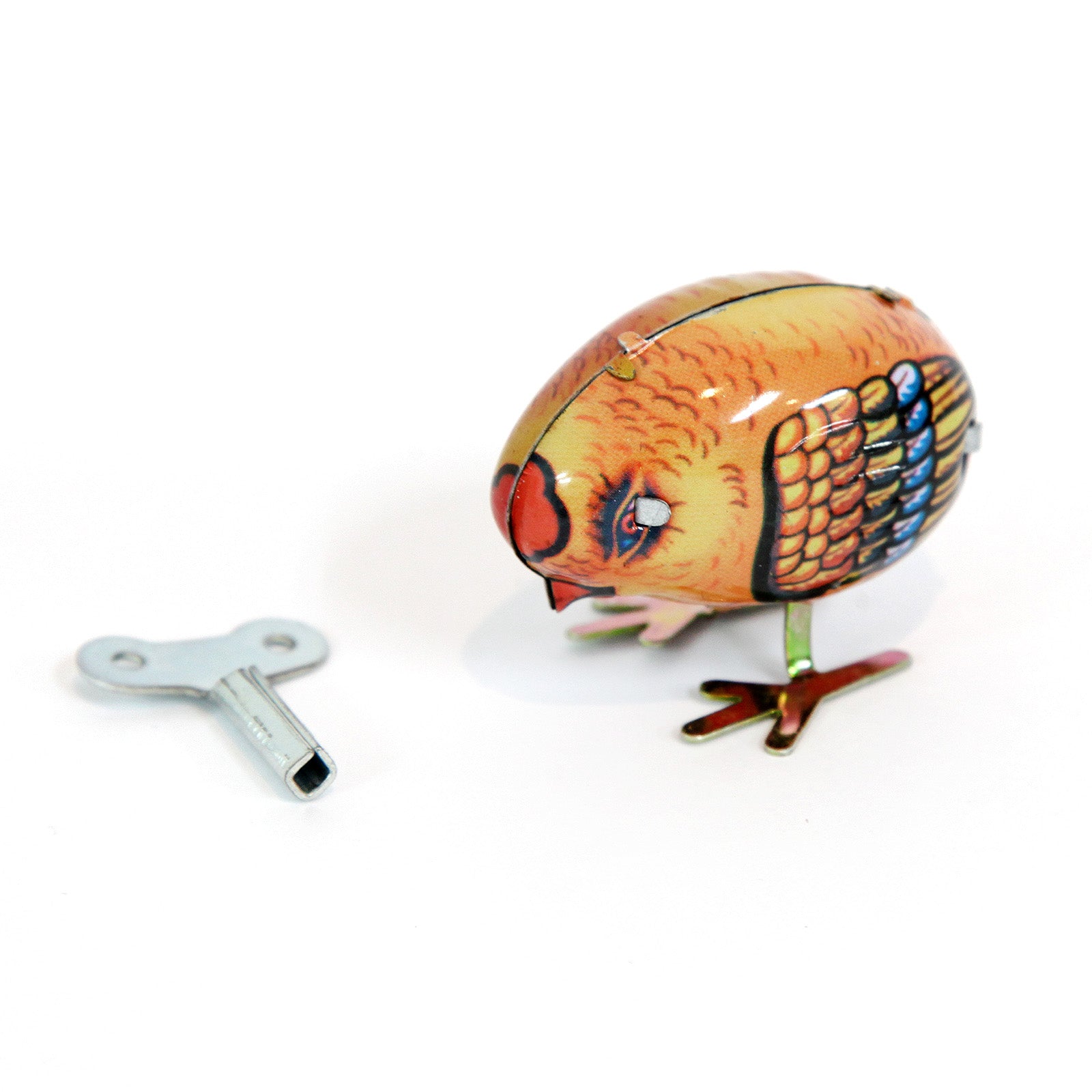 昔懐かしい「動くブリキ動物」の世界がここに。ひよこのユーモラスでどこか憎めない表情が魅力です。ゼンマイを巻けば、カタカタとぎこちなく歩き出します。ヴィンテージ雑貨、ブリキ玩具コレクターにもおすすめです。