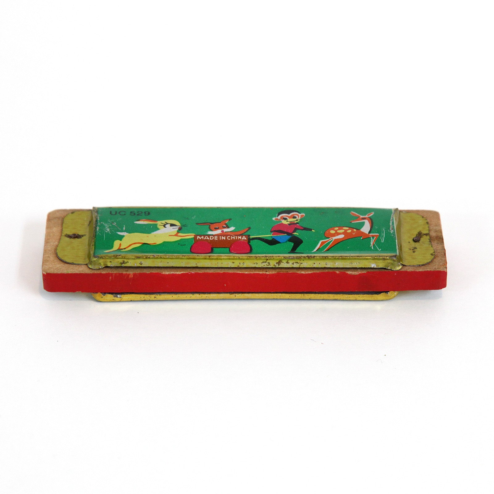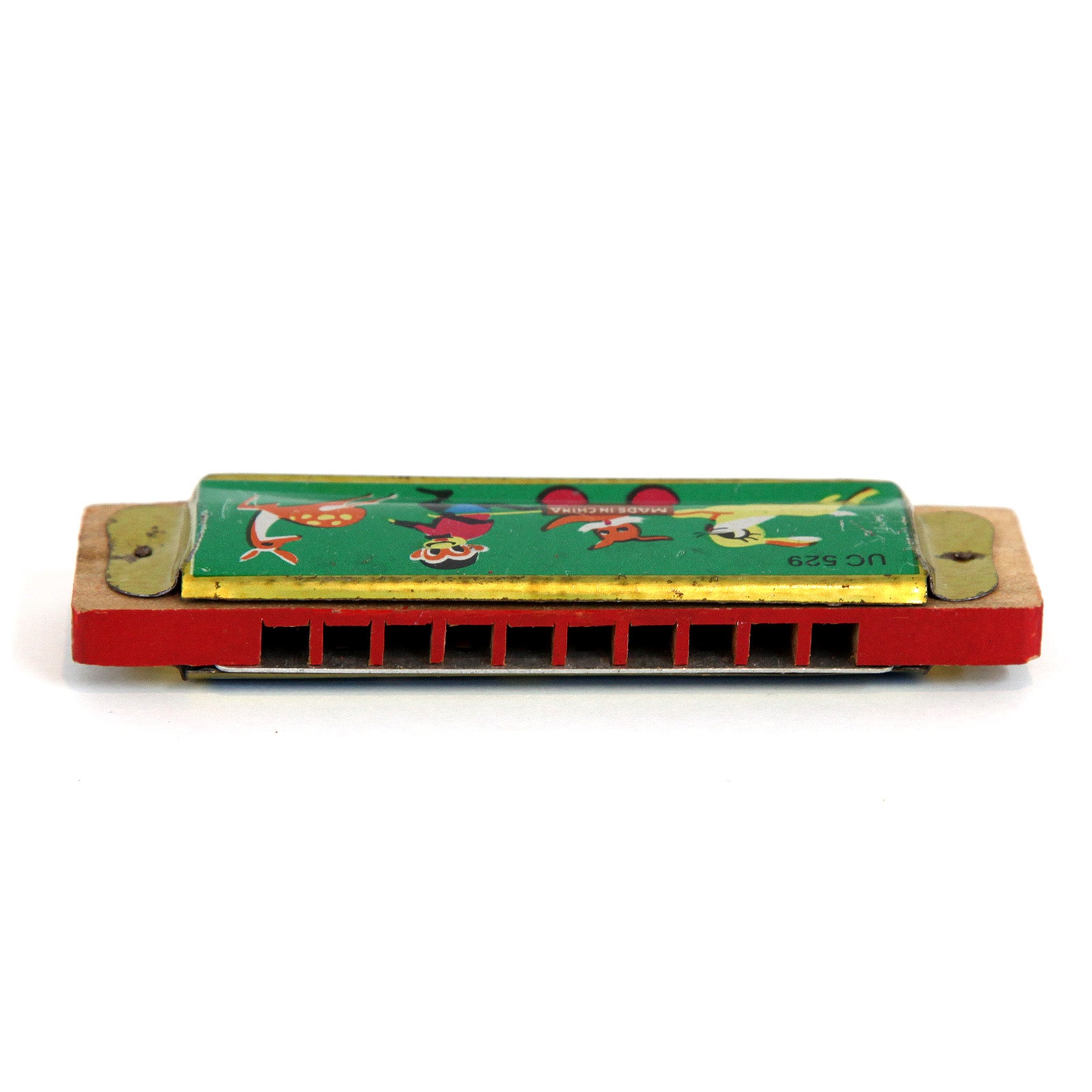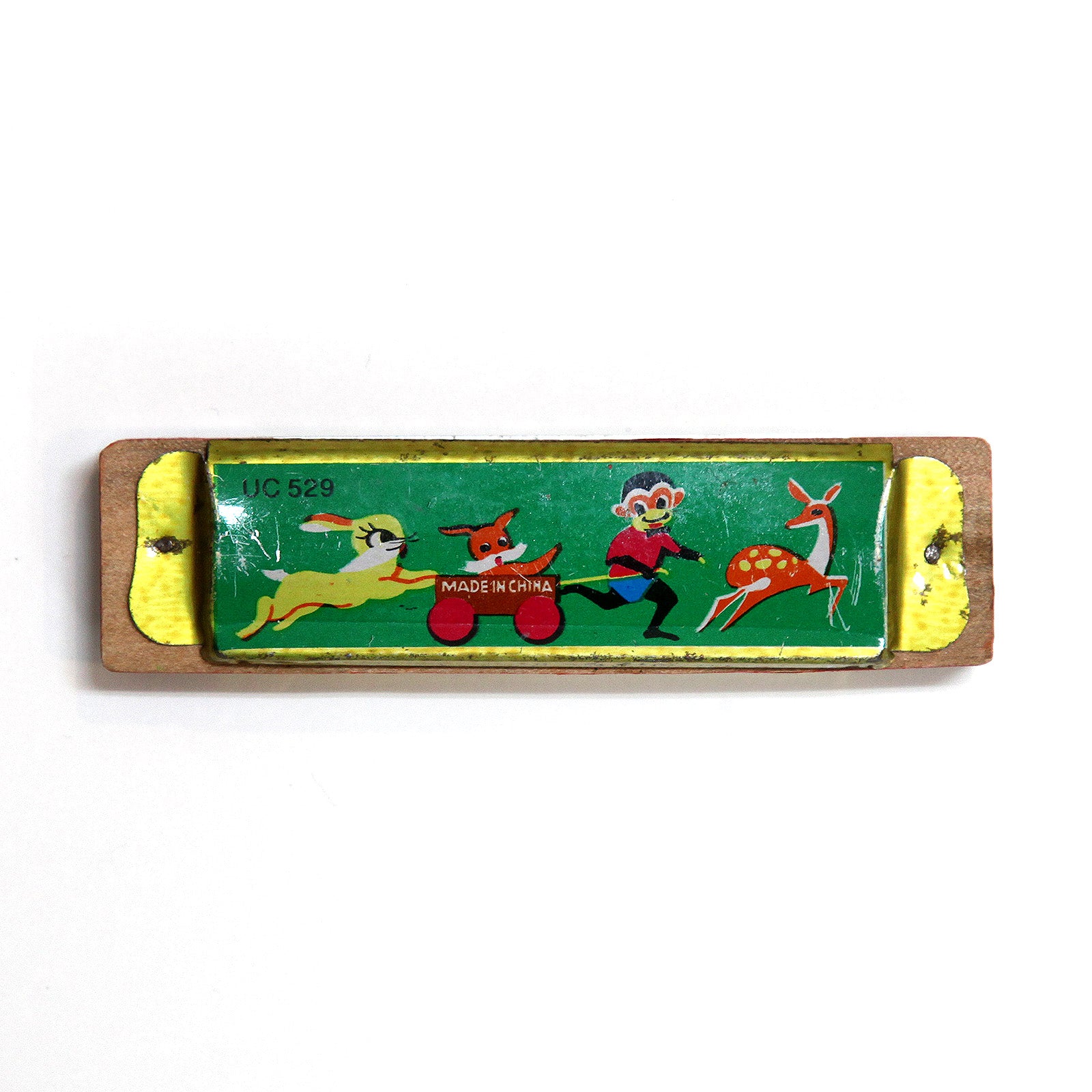 木製の手のひらサイズの小さなハーモニカ。レトロな雰囲気の動物や踊る子どもたち──昔懐かしい童話のような絵柄が、ノスタルジックです。吹けば素朴な音色がこぼれます。